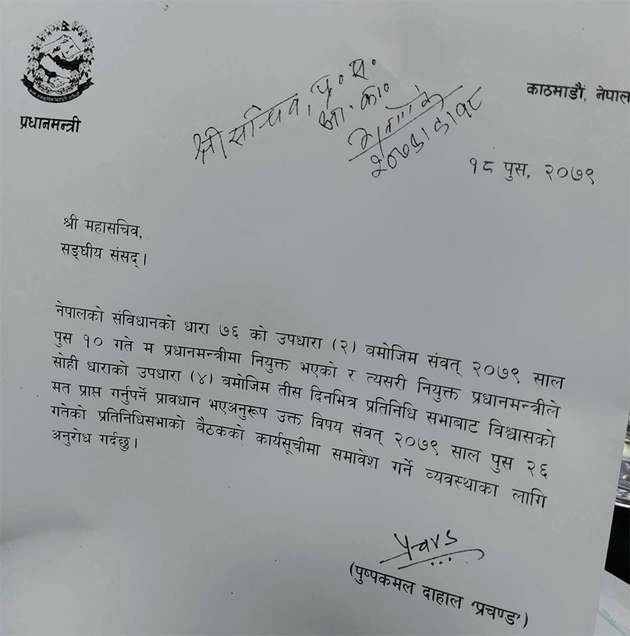 प्रधानमन्त्री प्रचण्डले पुस २६ गते विश्वासको मत लिने